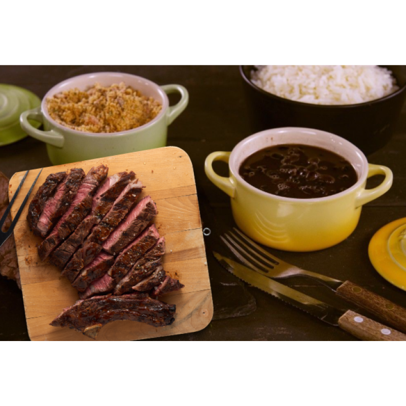 Acompanha: Guarnição de arroz brasileiro Camil, feijão preto e farofa.